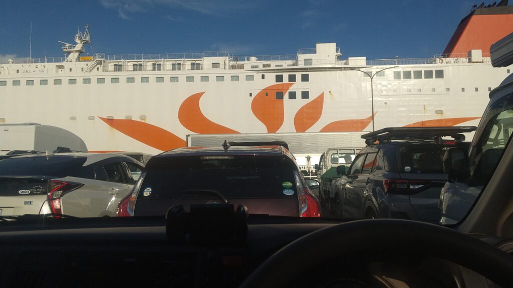 乗り込み待ちの車列に加わる。やっぱさんふらわあデケェ!